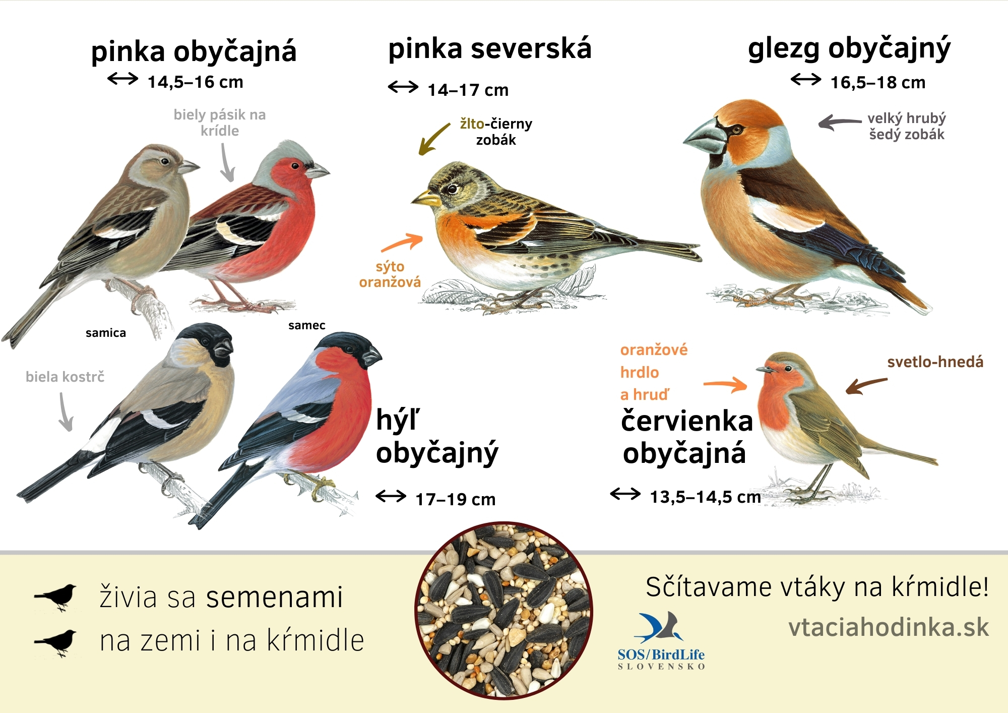 Vtáčí svet je pestrý, plný poletujúcich, poskakujúcich a skrývajúcich sa operencov. Poznať, koho práve pozorujeme, môže byť najprv oriešok. Ale keď sa nám to podarí, máme z pozorovania dvojnásobné potešenie. Naučiť sa poznávať najčastejšie druhy na kŕmidle zvládne s trochou tréningu každý z nás.